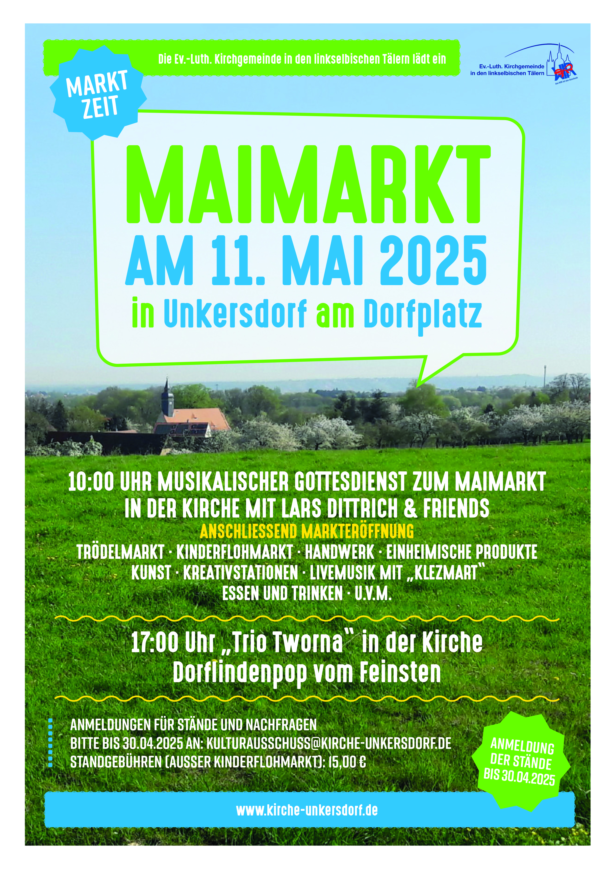 Die kleine besinnliche Andacht mitten im Kerzenziehen und gemeinsames Weihnachtsliedersingen am Samstag 17.00 Uhr wird musikalisch ausgestaltet vom Unkersdorfer Kirchenchor. Kosten: nach Kerzengewicht.